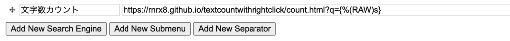 https://rnrx8.github.io/textcountwithrightclick/count.html?q={%(RAW)s}Selection Searchプラグインの設定画面の「Add New Serch Engine」クリック→上記を貼り付けで完了します。