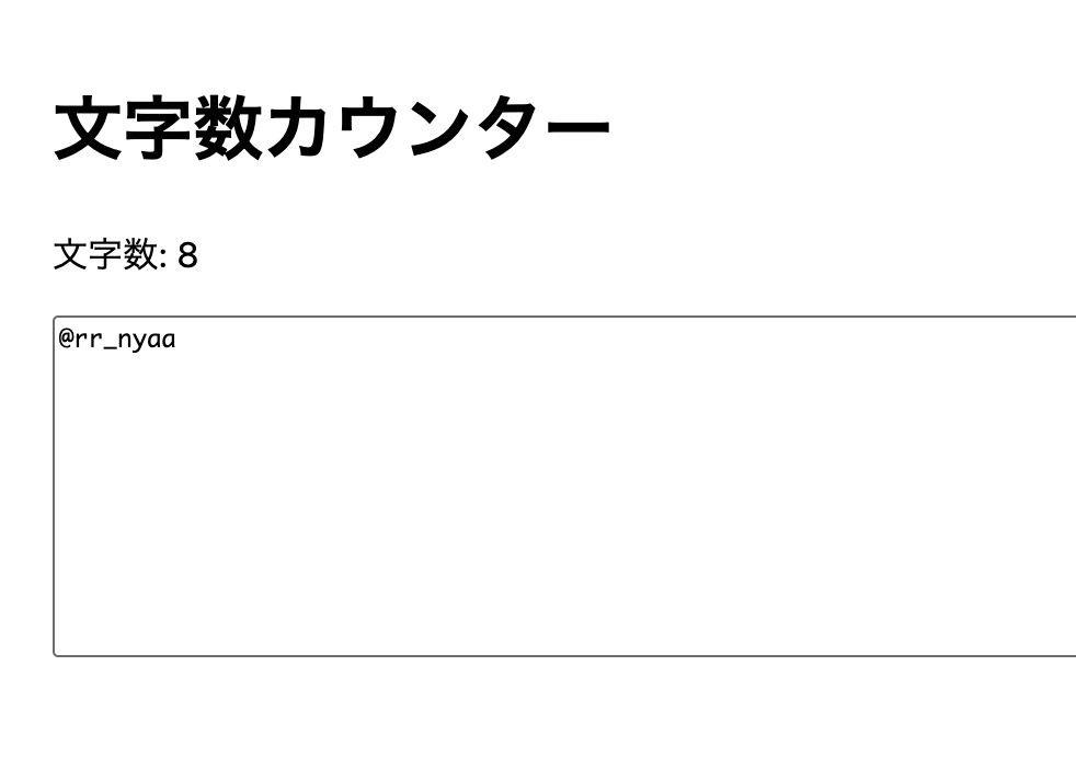 </html>渡された文字列をテキストエリアに入れ、上に「文字数」を表示するだけのシンプルなページができあがります。